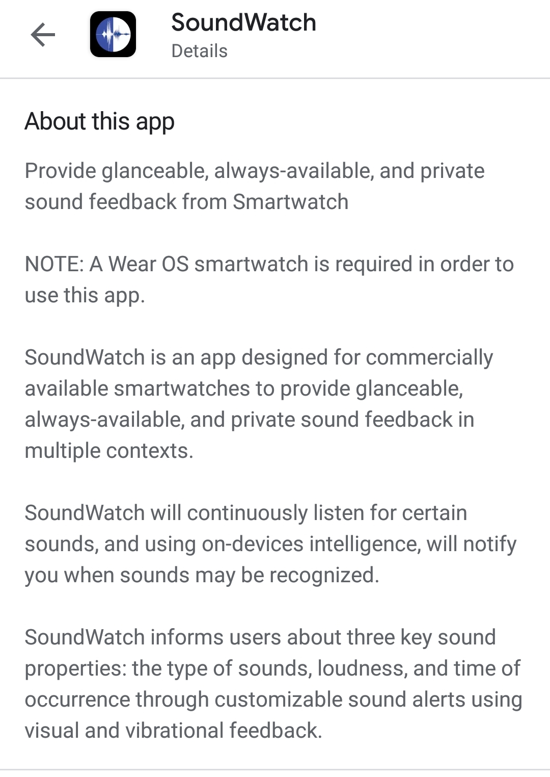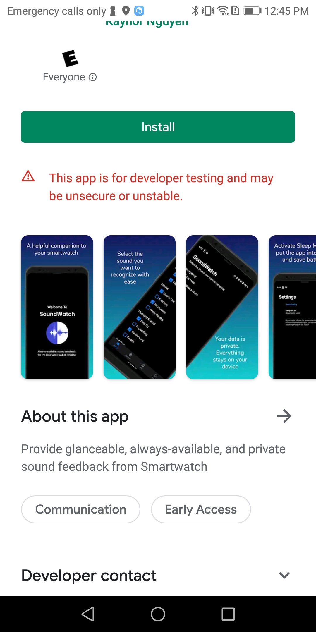 I am going to type in feedback here about my trials of the SoundWatch app. First off is the installation process:
