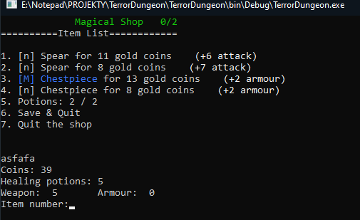 This is my first ever fun little learning project from 2021 for C# and game design in general. "TerrorDungeon" - small, rpg, dungeon crawler console game.