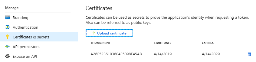 Alternativly you can authenticate via certificates, which can be generated using openssl, as described here. Then, you need to upload the certificate (the .crt file), which can be done in the Certificates & secrets tab to the left of the application registration menu.