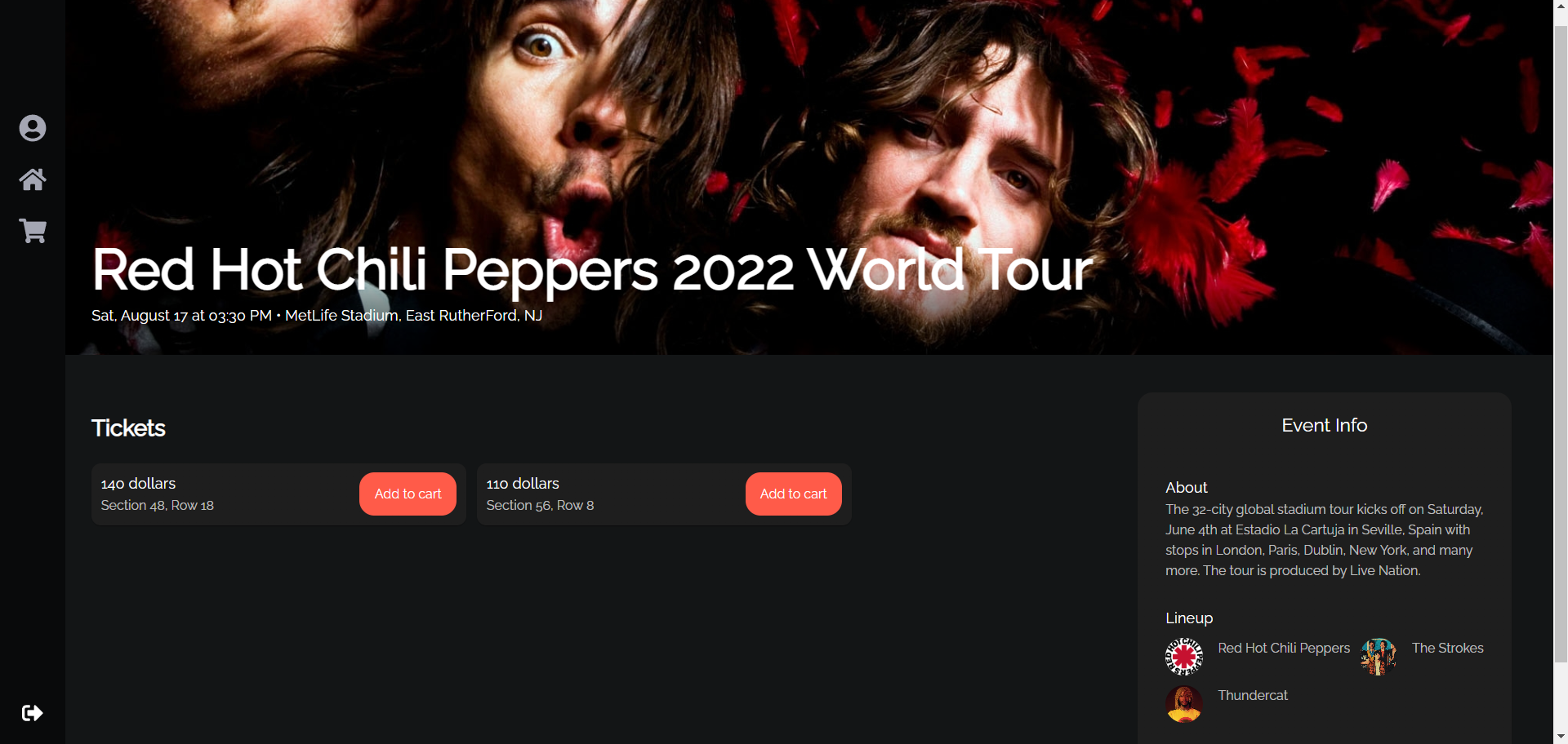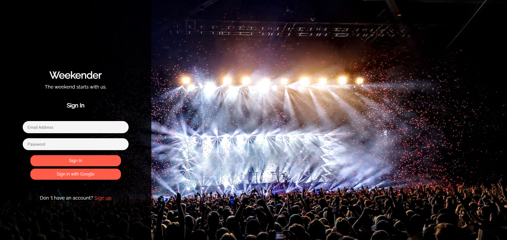 Weekender A React e-ticketing platform for the Advanced Front-End course. Screenshots: Concepts/functionalities: Multiple public/private routes Reusable components E.g.: BoxInfo, EventItem (see more here) Register, Login, Profile State manager - Redux Firebase - Firestore