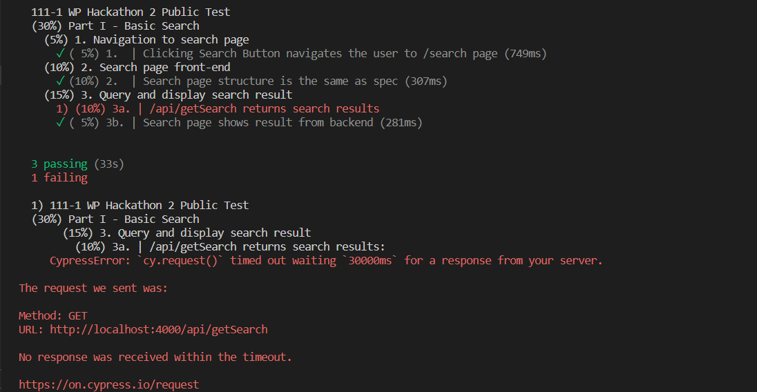 我在Gradescope上剩下1-3a及2-2a沒拿到分數,然而這兩題在cypress的報錯我看不太懂(如圖),而程式在實際執行上看起來很正常,請問可能是什麼原因造成錯誤的呢?