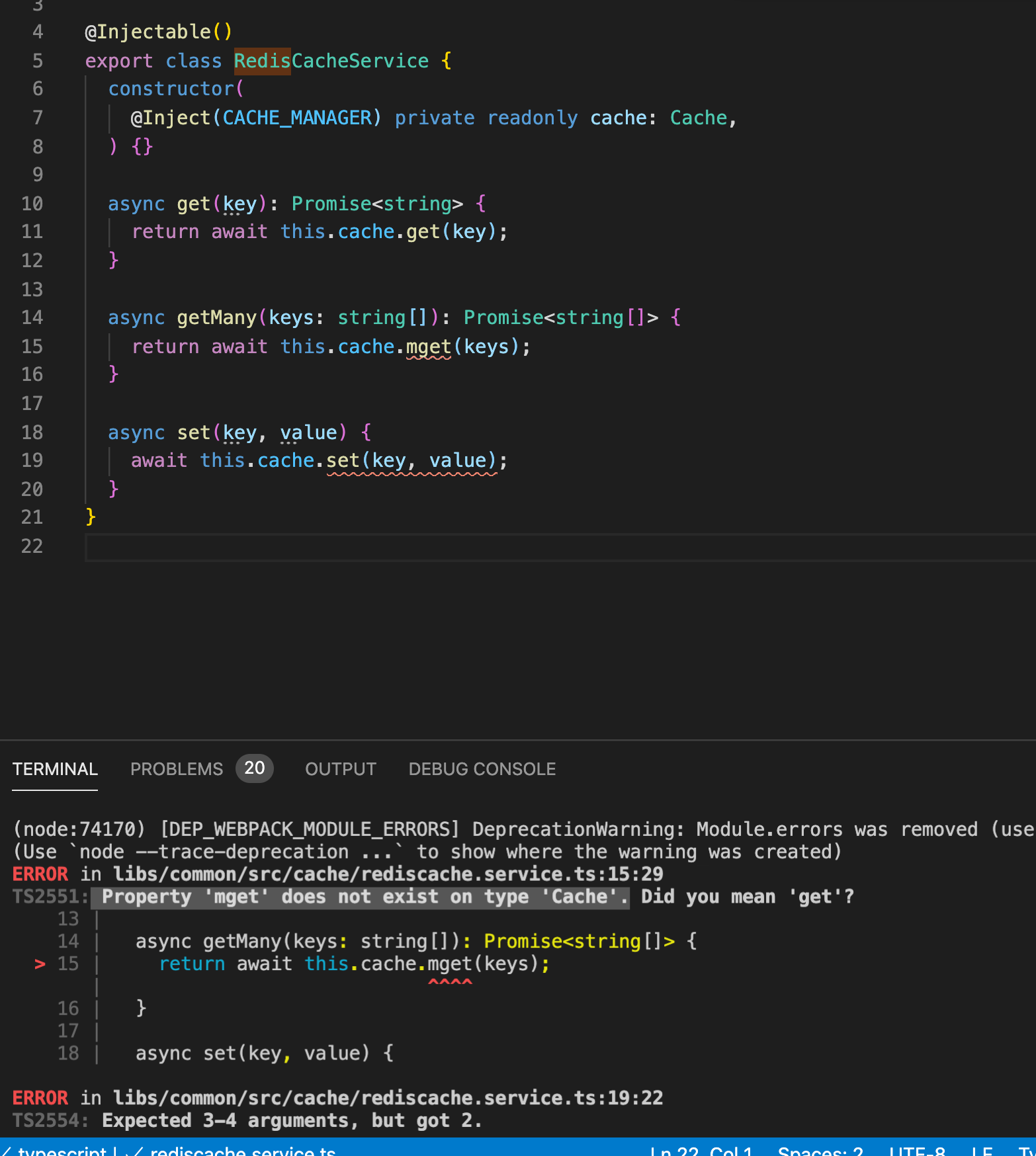 I was trying to do this in my own project and i followed your example from your repo here and i found you online elsewhere but in my case it doesn't work. I get Property 'mget' does not exist on type 'Cache' as well as the this.cache.set now requires 3-4 params instead of 2. But in your project it compiles, although we use the same
