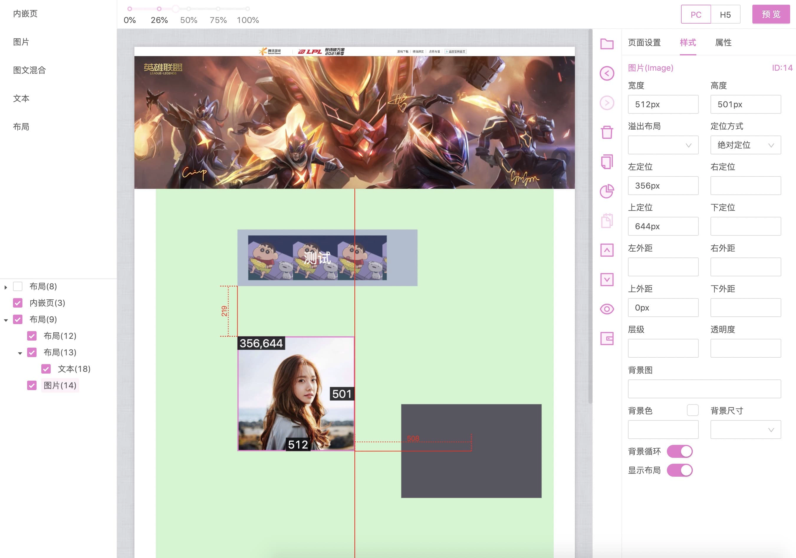 在搭建使用程中,我们寄希望于画布设计尺寸永远为1920(移动端则为750),但是视口显然没那么大,所以我们要将画布以左上角为缩放焦点transform-origin: 0 0,拖动导航slide或按下空格利用滚轮缩放。这个过程中不断改变transform: scale来刷新视图。